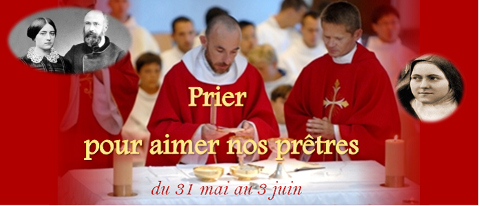 Le vendredi 3 juin, solennité du Sacré-Cœur, ce sera la Journée mondiale de prière pour la sanctification des prêtres. Pour la préparer, nous vous proposons à partir du mardi 31 mai, 4 jours de prière pour apprendre à mieux aimer nos prêtres.