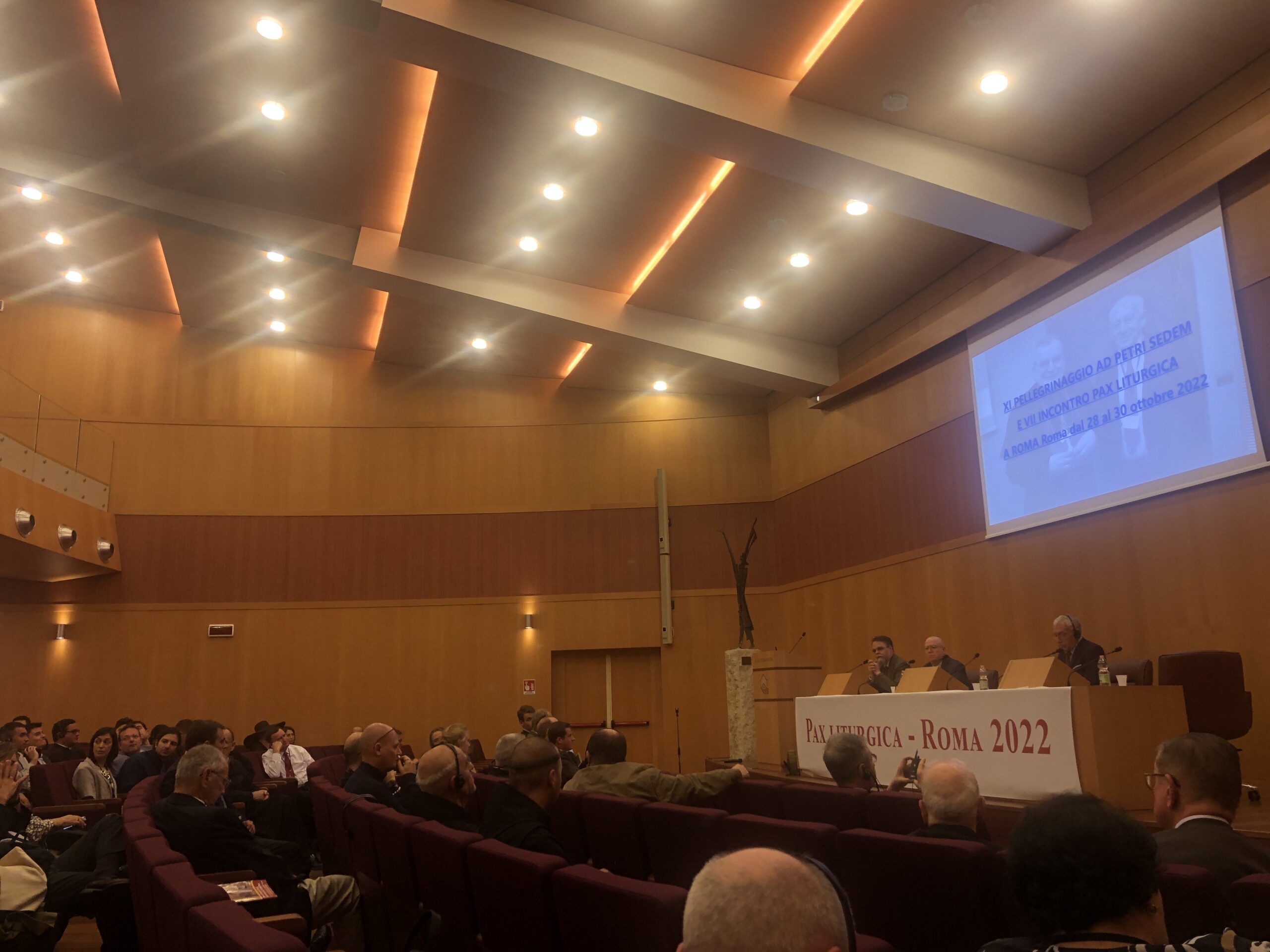 Les conférences se sont poursuivies pendant cette 7ème rencontre Pax Liturgica. Aldo Maria Valli est un blogueur et journaliste. Avec humour, il a rappelé qu’il n’a jamais vu de converti se dire ému de la pastorale ou d’un synode. Quand on entre dans l’Église, on cherche la beauté et la vérité. Le latin est le sceau de l’universalité de l’Église. Avec l’introduction massive du vernaculaire, on a fait de l’Église un organisme purement humain.