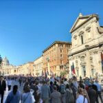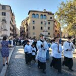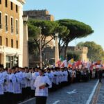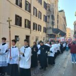 On pouvait y voir de nombreux drapeaux représentant les pays où est célébrée la messe de rite tridentin – plus de 95 à ce jour – et le caractère universel du pèlerinage, qui d’année en année a pris de l’ampleur sans être affaibli par les deux années de crise sanitaire, ainsi que par un contexte ecclésial sensible – ce qui n’a pas empêché le cardinal Zuppi, président de la conférence épiscopale italienne et archevêque de Bologne, de célébrer les vêpres au Panthéon.