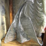 Comme j’avais toujours promis que je sculpterais une Vierge qui manquait dans la niche, au dessus de la porte d’entrée, j’ai enfin réalisée celle-ci en 2010. Elle est en fil de fer que l’usine fabrique toujours. J’ai utilisé pour cette œuvre 30 bobines de fer de 50 mètres.