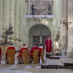 Dans cet édifice vide, chaque parole résonne avec un puissant écho qui témoigne de la situation de travaux dans laquelle la cathédrale se trouve. En ce 29 juin, la proclamation de l’Evangile selon saint Matthieu (16, 13-19) « Tu es Pierre, et je te donnerai les clés du royaume des Cieux » a pris un goût tout particulier« .
