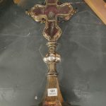 - Une croix de procession début XVIIe montée sur un socle posterieur (lot 123)