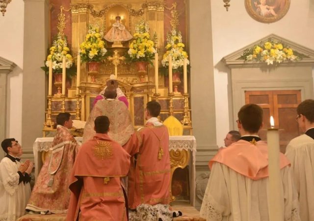 Dimanche dernier, l’Institut du Christ-Roi Souverain Prêtre (ICRSP) organisait une procession dans la ville de Trèves en direction de la cathédrale après la célébration d’une messe par les chanoines de l’Institut en l’église saint-Martin.