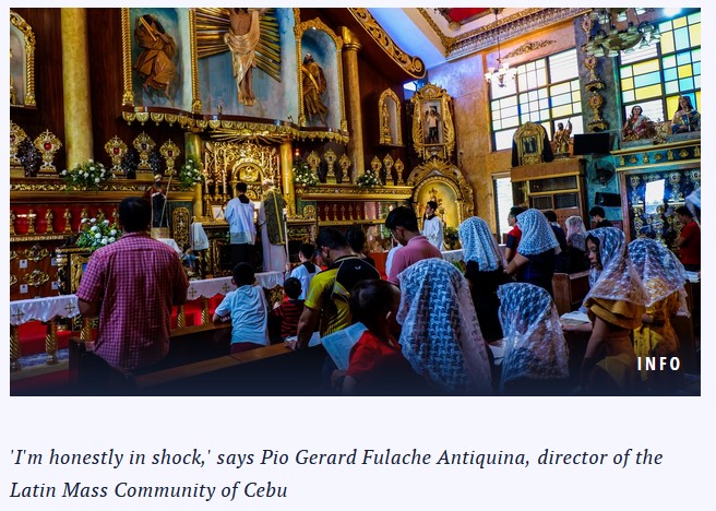L’archevêque de Cebu a annoncé la suspension sine die de la célébration de la messe traditionnelle dans son diocèse. Cebu est la 5è ville des Philippines (près d’un million d’habitant).
