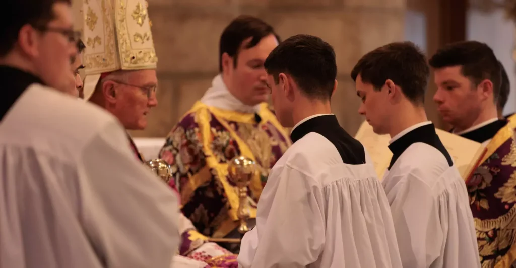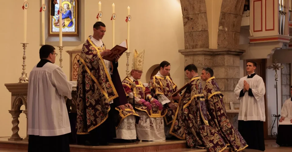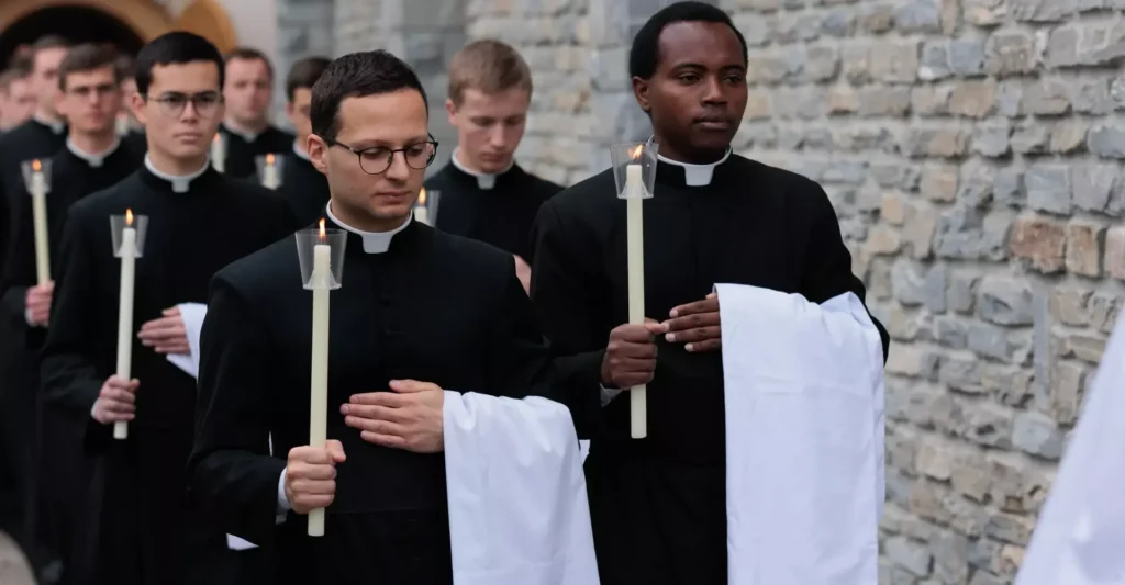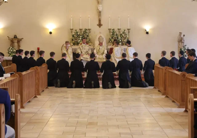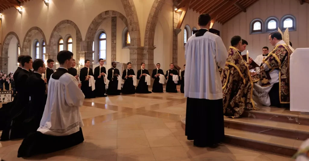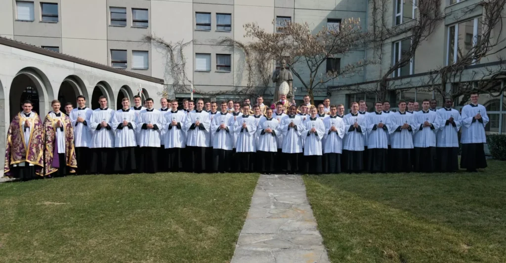 Au Séminaire Saint-Pie X d’Econe le 15 mars 2025, samedi des Quatre-Temps de Carême, Mgr Bernard Fellay a conféré la tonsure cléricale à 18 séminaristes de la Fraternité Saint-Pie X (un Belge, deux Italiens, onze Français, deux Kényans et deux Suisses). Il a conféré également les ordres mineurs de portier et de lecteur à 14 séminaristes.
