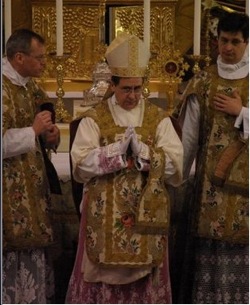 C’est en effet la première fois, à notre connaissance, qu’un membre de l’Opus Dei consacre selon les livres liturgiques en vigueur avant la réforme conciliaire. En l’occurrence, il s’agit de Mgr Juan Ignacio Arrieta Ochoa de Chinchetru, évêque espagnol de 60 ans, sacré en 2008 par le cardinal Bertone. Docteur en droit canon. Mgr Arrieta est par ailleurs membre de la Curie depuis 2007, en tant que secrétaire du Conseil Pontifical pour les Textes législatifs.