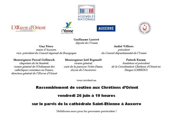 Rassemblement de soutien aux chrétiens d’Orient prévu à Auxerre le 26 juin 2015