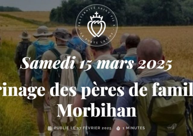 Le Mouvement catholique des familles (MCF) organise un Pèlerinage des Pères de famille le 15 mars 2025 de Ploërmel à Guer (Aumônerie FSSPX). Lire la suite ...