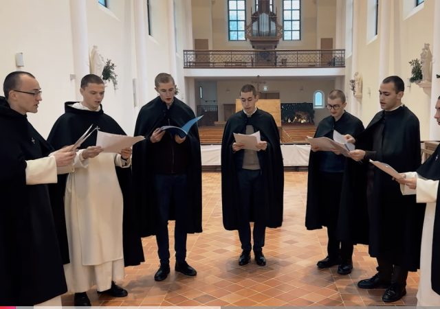 Ce sont les vœux de la Nativité chantés par le noviciat des dominicains de la Fraternité Saint-Vincent-Ferrier de Chémeré-le-Roi (Mayenne).