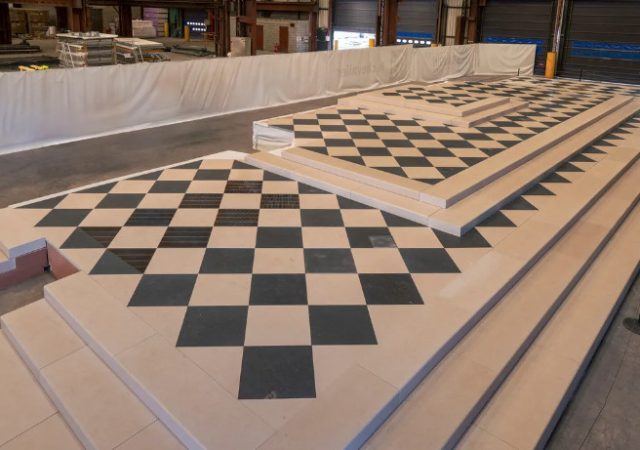 Avec son dallage noir et blanc, voici le nouveau plateau de chœur de Notre-Dame de Paris.