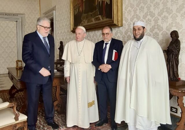 Ce lundi 28 février 2022 au Vatican, le recteur de la grande mosquée de Paris Hafiz Chems-eddine, avec une délégation, a été reçu en audience privée par le Pape François :