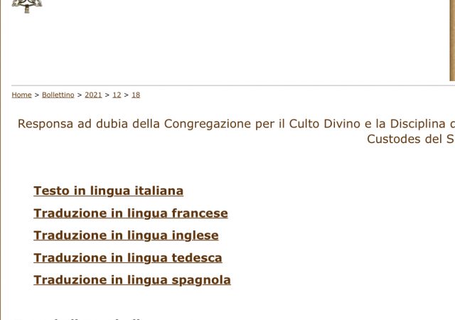 Dans son blog, Yves Daoudal, commente la publication des Dubia romains qui confirment la restriction de l’usage du rit traditionnel: