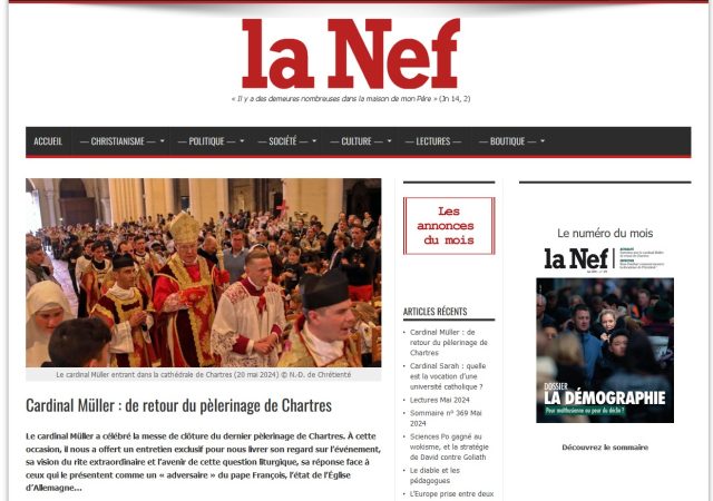 Suite au dernier Pèlerinage de Chartres, le cardinal Gerhard Müller a répondu aux questions de l’Appel de Chartres (n°279, Juin 2024) dont une sur la messe traditionnelle Lire la suite ...
