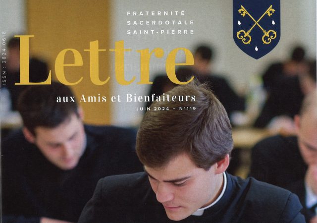 La dernière lettre aux Amis et Bienfaiteurs de la Fraternité Saint-Pierre vient de paraître (n°119, Juin 2024).