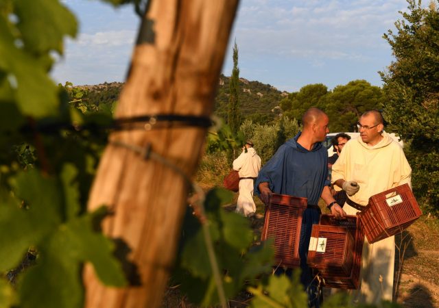 Pendant les vendanges, les moines de l’Abbaye Sainte-Madeleine du Barroux chantent aussi les offices dans les vignes !