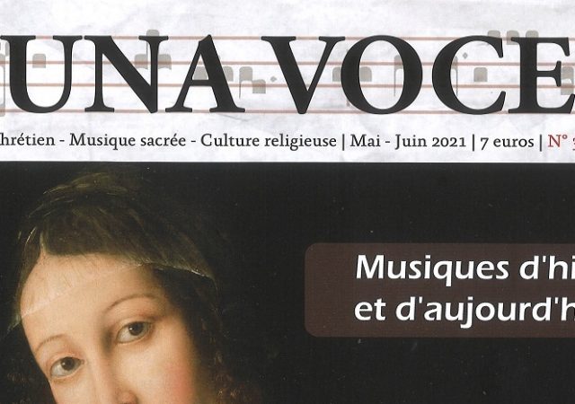 Le dernier numéro de la revue d’Una Voce vient de paraître : n°332 Mai et Juin 2021. Le dossier de ce numéro est consacré aux Musiques d’hier et d’aujourd’hui Lire la suite ...