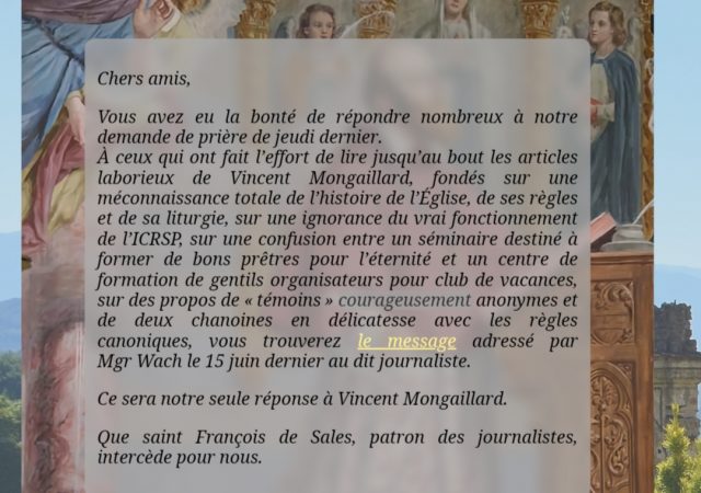 Communiqué des communautés traditionnelles (Ecclesia Dei)