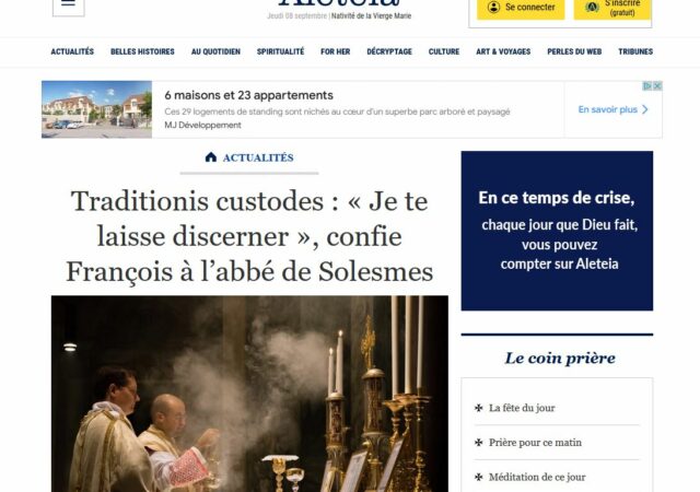 Aleteia a interrogé Dom Geoffroy Kemlin, abbé de Solemes, suite à sa rencontre avec le Pape François le 5 septembre. Il a notamment évoqué avec le Pape le Motu Proprio Traditionis Lire la suite ...