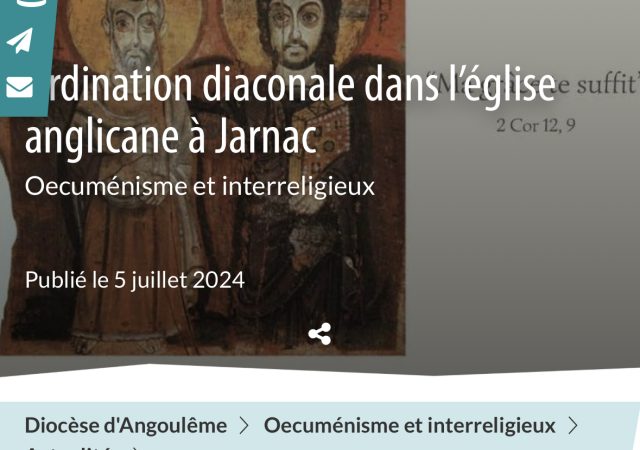 C’est une ordination dans une communauté non catholique, qui a eu lieu dans un temple protestant. Mais elle a été annoncée sur le site de l’Église catholique en Charente (diocèse d’Angoulème): Lire la suite ...