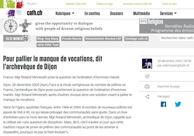 Mgr Roland Minnerath, évêque de Dijon, met dehors les 2 prêtres de la Fraternité Saint-Pierre… pourtant Monseigneur s’interrogeait dans les années années 2000 sur Lire la suite ...
