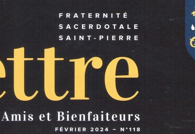 La dernière lettre aux Amis et Bienfaiteurs de la Fraternité Saint-Pierre vient de paraître (n°119, Juin 2024).