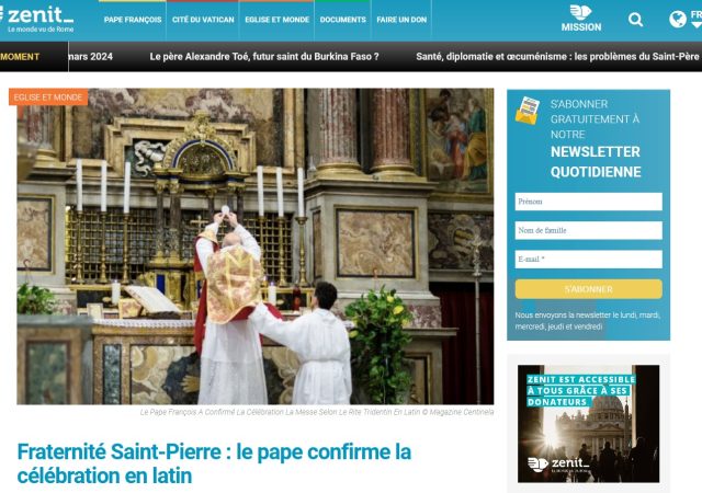 L’Agence Zenit évoque l’audience privée entre le Pape François et les Supérieurs de la Fraternité Saint-Pierre le 29 février :