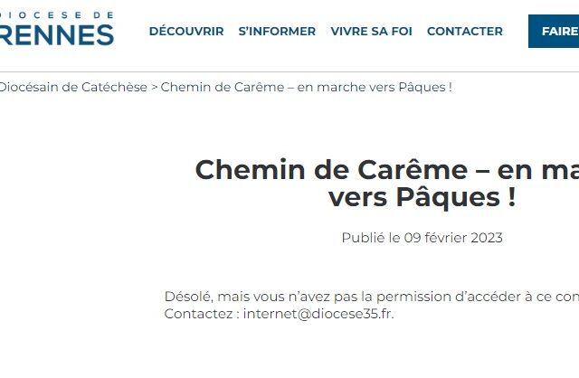 Sur le site du diocèse de Rennes, le « chemin de Carême » est inaccessible. Et ce, depuis le 9 février, ce qui ne semble guère susciter d’inquiétudes, bien que l’erreur Lire la suite ...
