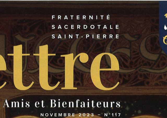 Dernière lettre aux Amis et Bienfaiteurs de la FSSP (n°117, novembre 2023)