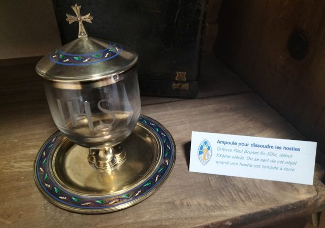 Dans la collection de la commission diocésaine d’art sacré du diocèse d’Albi, il y a une ampoule pour dissoudre les hosties consacrées, lorsqu’elles sont tombées Lire la suite ...