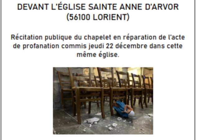 Une semaine après le saccage de l’église Sainte-Anne d’Arvor à Lorient (an Oriant) dans le Morbihan, la section Civitas du Morbihan organise un chapelet public de réparation, Lire la suite ...