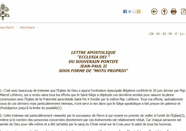 Il y a 34 ans ce 2 juillet 1988, le Pape Jean-Paul II publiait son Motu Proprio Ecclesia Dei :