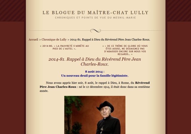 10è anniversaire du rappel à Dieu du RP Jean Charles-Roux : « permettez moi de célébrer l’ancienne messe »