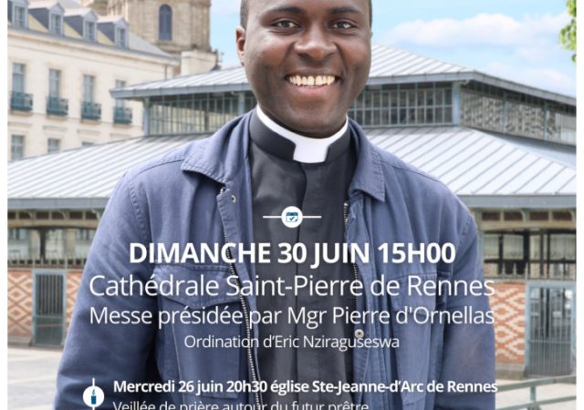 Le 30 juin prochain, le diocèse de Rennes invite à venir prier pour Eric Nziraguseswa qui sera ordonné par Mgr Pierre d’Ornellas à 15h en la Cathédrale Saint-Pierre de Rennes.