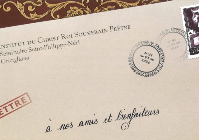 Comme chaque année avant l’été, le Séminaire Saint-Philippe Néri (Gricigliano), séminaire de l’Institut du Christ Roi Souverain Prêtre, publie sa lettre aux Amis Lire la suite ...