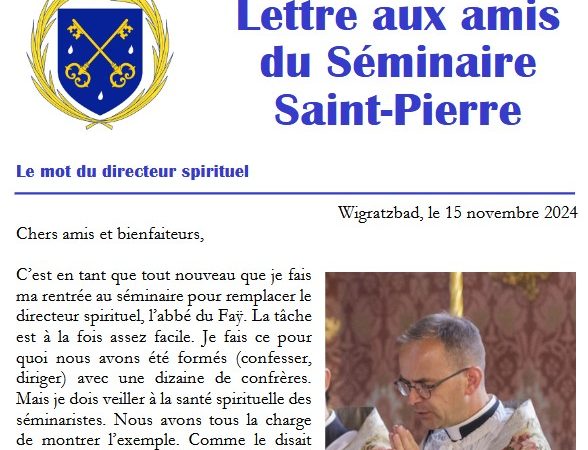 L’abbé Guillaume Lodde, FSSP, directeur spirituel, signe l’éditorial de la dernière lettre aux Amis du Séminaire Saint-Pierre (15 novembre 2024) qui donne également Lire la suite ...