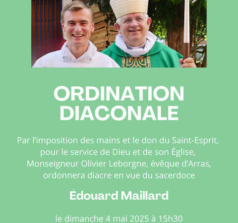 Le 4 mai prochain, Mgr Leborgne va ordonner le séminariste Edouard Maillard diacre en vue du sacerdoce, à 15h30 en la basilique Notre-Dame-des-Miracles de Saint-Omer (62).